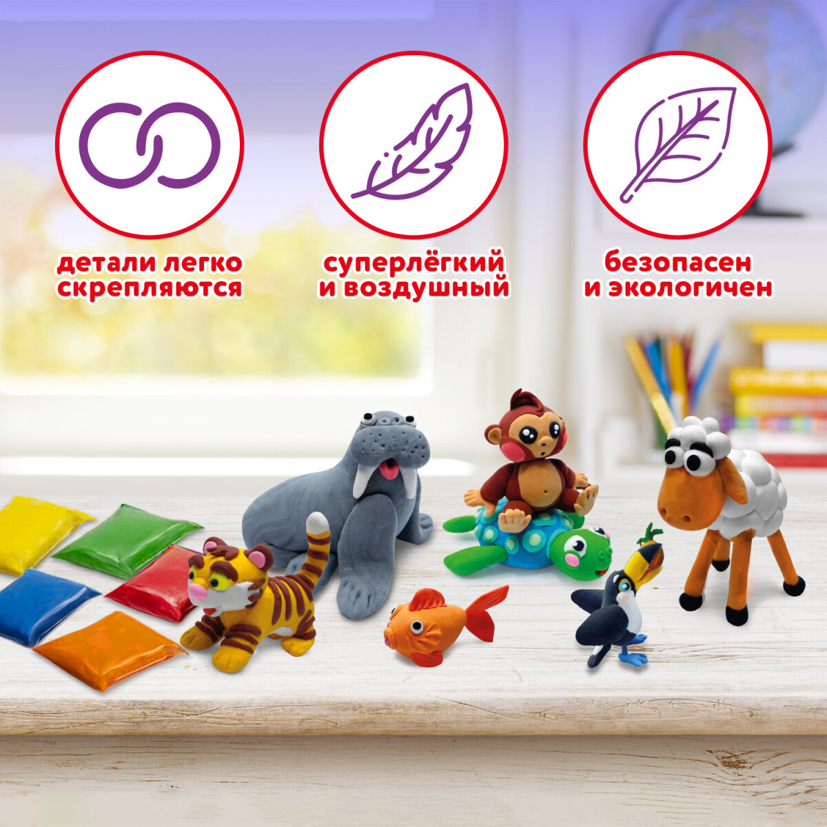 Пластилин супер легкий воздушный застывающий от ЮНЛАНДИЯ — идеальный выбор для маленьких творцов. Этот набор для творчества для девочек и мальчиков включает 24 ярких цвета и 3 стека, что обеспечивает массу вариантов для создания уникальных поделок, миниатюрных скульптур или картин. Пластилин обладает исключительной легкостью и мягкостью, легко принимает нужную форму и не требует предварительного разминания. Прекрасные пластичные свойства и насыщенные цвета делают этот воздушный пластилин незаменимым для рисования и лепки. Просто оставьте вашу поделку на открытом воздухе, и она застынет, сохранив свою форму. Пластилин для лепки ЮНЛАНДИЯ абсолютно безопасен, не токсичен и подходит для детей старше 3 лет. Набор весом 240 г включает 24 бруска по 10 г каждого цвета, среди которых белый, телесный, оранжевый, фуксия, красный, желтый, светло-зеленый, зеленый, синий, фиолетовый, коричневый, черный и многие другие. Упакованный в прозрачный пакет, этот набор станет великолепным дополнением к арсеналу канцелярии для вашего ребенка, способствуя развитию его творческих навыков и мелкой моторики. Подарите вашим детям радость и вдохновение с этим воздушным пластилином для лепки! • Количество цветов в наборе: 24 шт. • Тип: легкий. • Эффекты: нет. • Наличие аксессуара: стек. • Масса: 240 г. • Масса бруска: 10 г. • Количество брусков в наборе: 24 шт. • Серия: Light. • Вид упаковки: пленка. • Артикул производителя: 105906.