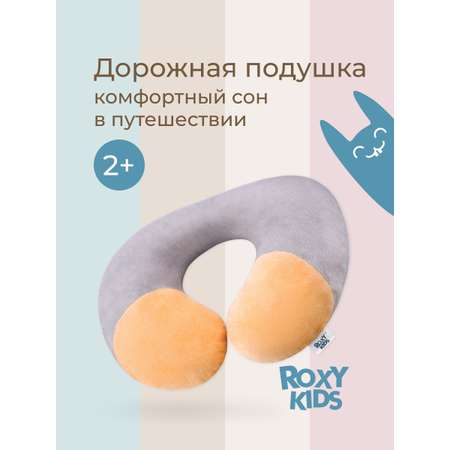 Подушка детская ROXY-KIDS дорожная для шеи в машину и самолет рогалик цвет серый