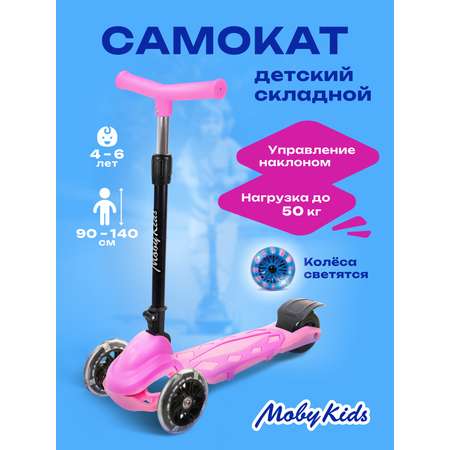 Самокат трехколесный Moby Kids для девочек складной Dragon светящиеся колеса 120 мм PVC