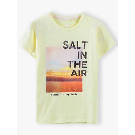 Модель выполнена из хлопкового трикотажа. Детали: - круглый вырез; - свободный крой; - короткие рукава; - оригинальный принт на полочке.
