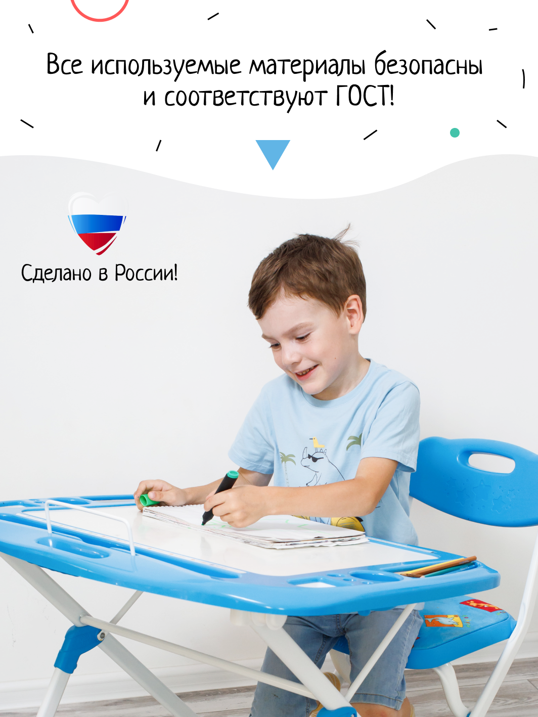 Растущие вместе с ребенком стол-парта и стульчик InHome kids — это идеальный комплект детской мебели! Главное преимущество этого комплекта — он растёт вместе с вашим ребёнком и подходит для детей разных возрастов. Заниматься творчеством, учиться и развиваться становится максимально комфортно, а поза ребенка во время занятий способствует сохранению здоровой осанки. Раскладной стол со встроенным пеналом подходит для рисования, письма, чтения и любых творческих занятий. Он оснащён подстаканником и подставкой для книг и планшета. Стол-трансформер, как парта, имеет три уровня наклона и пять уровней высоты. У складного стула - три уровня высоты и эргономичная спинка, которая обеспечивает поддержку позвоночника. Мебель выполнена из качественных материалов и выполнена в универсальной цветовой гамме. Защитные закруглённые уголки стола и мягкое сиденье стула из искусственной замши гарантируют комфорт и безопасность ребенка во время игр и занятий. Создайте своему ребёнку свой уголок для творчества и развития! Сделано в России.Цены в интернет-магазине могут отличаться от розничных магазинов.