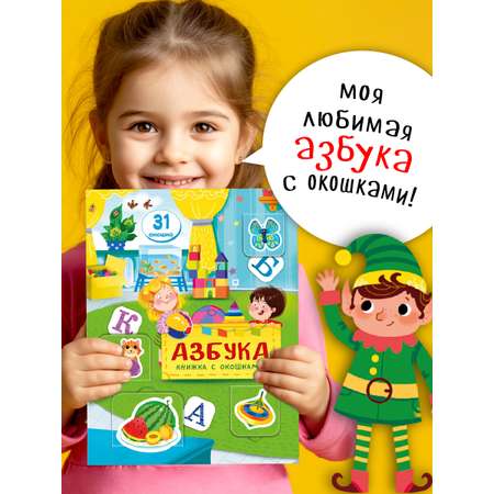 Эта книжка предназначена для первого знакомства малыша с буквами. Крупные яркие рисунки и узнаваемые образы помогут сделать первые шаги в мир грамоты. Картинки на каждую букву можно отыскать на страницах книги и в окошках-створках. Издание подойдет для занятий с детьми в возрасте от трех лет. Развивает память, мелкую моторику, зрительное восприятие, закладывает основы знаний о буквах и звуках. На каждую букву алфавита ребенок найдет целых три картинки! Книга большого формата, изготовлена из плотного целлюлозного картона, на обложке глянцевая ламинация, а все страницы покрыты защитным безопасным лаком. На пяти разворотах 31 окошко с яркими картинками. Размер окошек удобен для детских пальчиков. При первом прочтении рекомендуем помочь малышу открыть окошки. Для удобства первого открывания предусмотрена выемка под палец на каждом окошке.