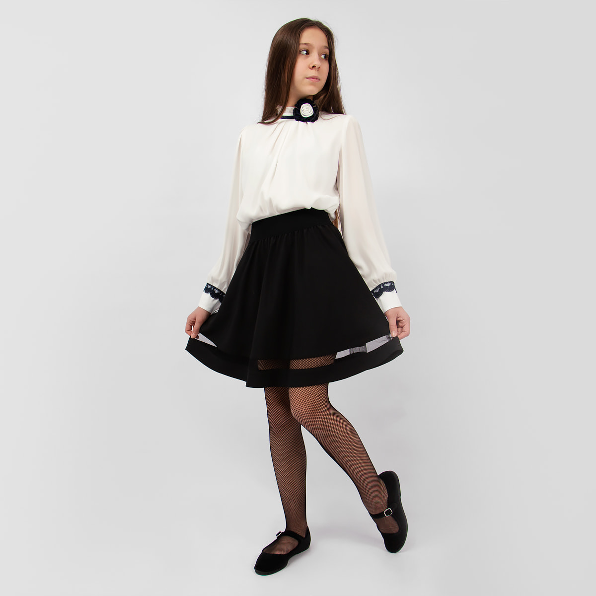 Юбка школьная для девочки "Соль&Перец". Школьная юбка для подростка - элегантная и нарядная одежда для школьниц. Изготовлена из качественной ткани, которая не мнется и отлично держит форму. С прозрачной вставкой из фатина на подоле, она придает образу легкости и изящности. Широкий пояс-резинка обеспечивает комфортную посадку и не сковывает движений. Сзади застегивается на молнию для удобства надевания. Декорирована складками, добавляющими объема и легкости. Эта юбка идеально подходит для повседневного ношения в школу, на линейку. Она не теряет цвет, не требует тщательного отглаживания, что делает ее удобным и практичным выбором для школьного гардероба.