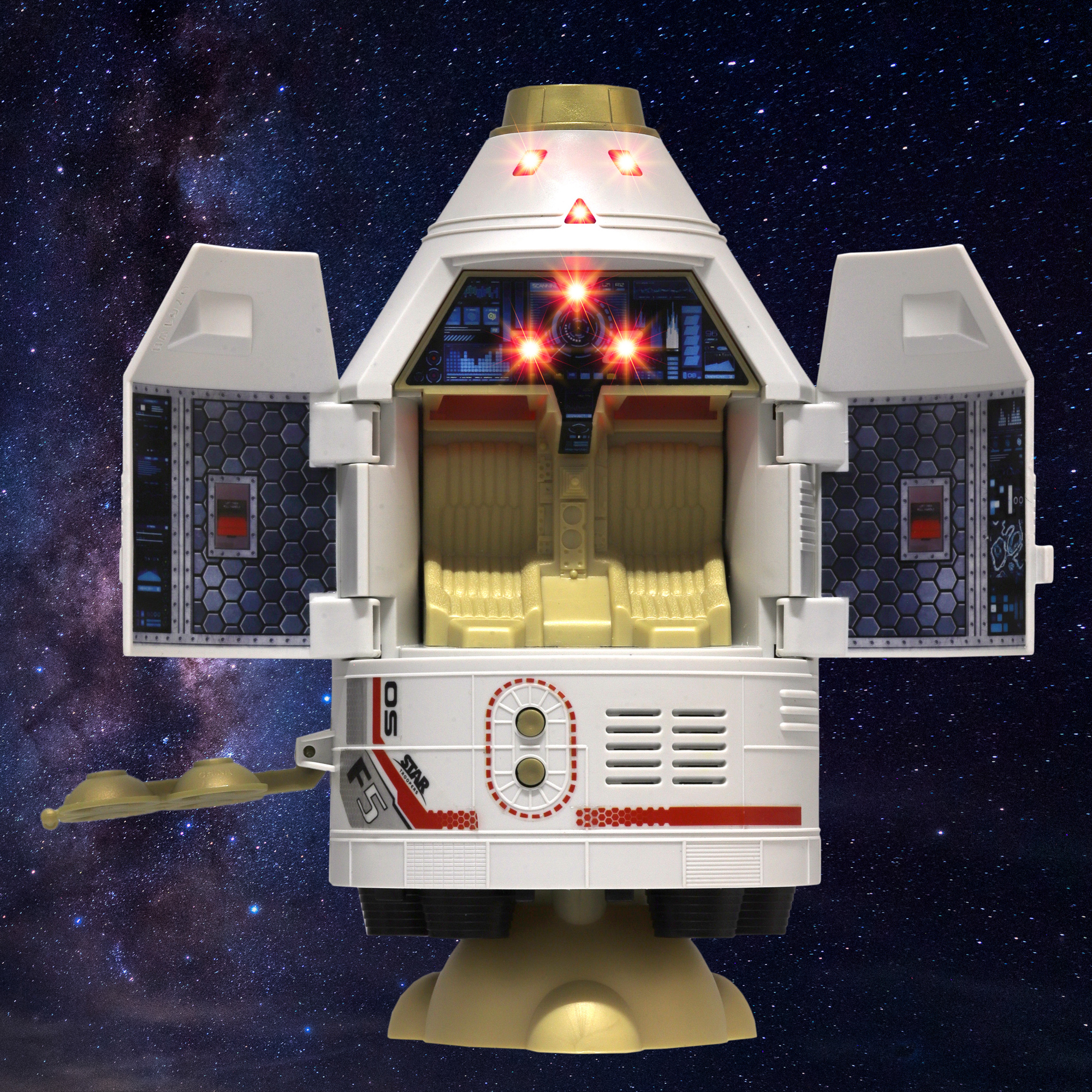 Подвижные створки открывают доступ в обитаемый отсек капсулы. Световые и звуковые эффекты имитирующие взлет/посадку и передачу разведданных, включаются кнопками. Пилоту можно надеть шлем, ранец и дать в руку оружие.