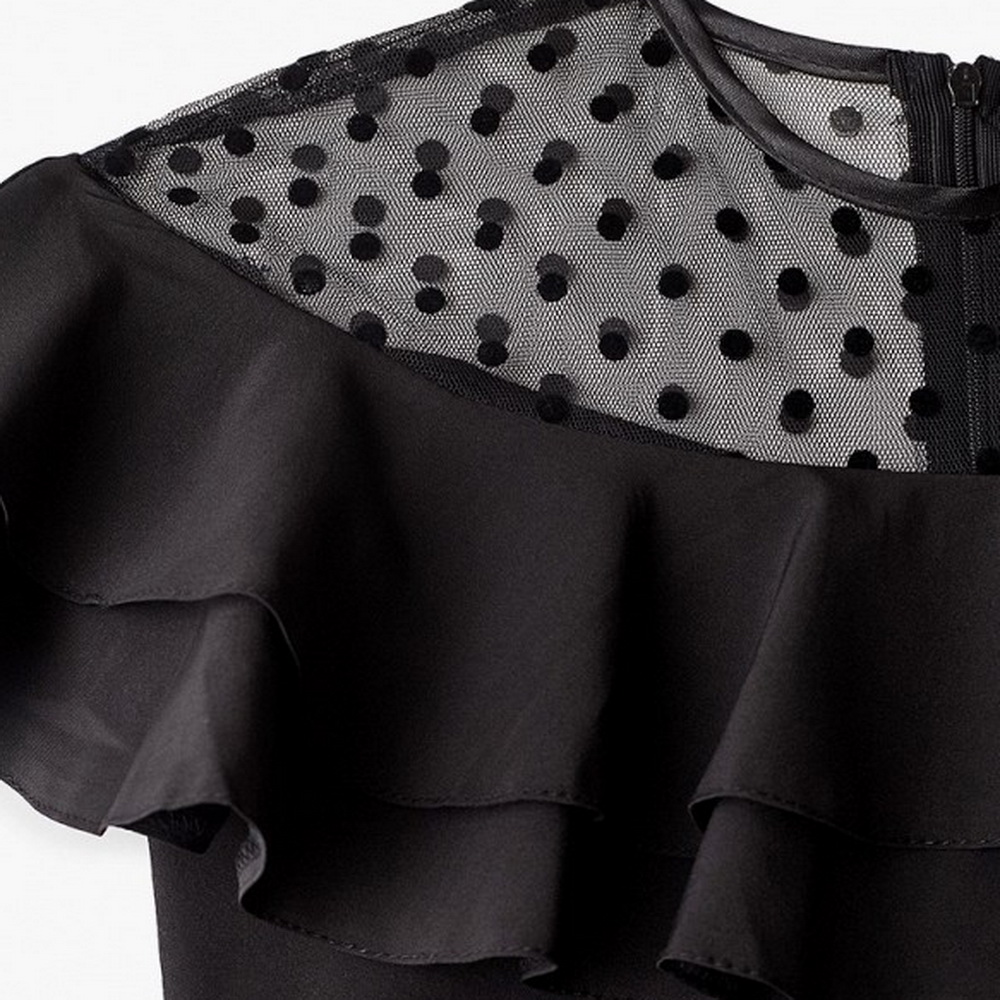 Блузка школьная, нарядная для девочки "Соль&Перец". Блузка для девочки - настоящая находка для любых случаев! Верх из фатина в бархатистый горошек (флок) придает образу особую изысканность и шарм. Плечи обрамлены пышным воланом, добавляя нежности и игривости. Удобная молния на спине облегчит процесс одевания. Круглый вырез придаёт блузке роскошный вид. Подойдет как для школы, так и для праздника, а также для повседневного использования.