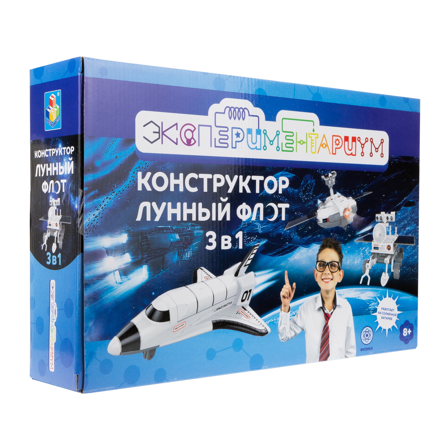 Уникальный научный набор ЭКСПЕРИМЕНТАРИУМ Лунный флот на солнечной батарее для конструирования 3 моделей не оставит равнодушным вашего ребёнка! Каждая модель работает при помощи специальной батареи, которая поглощает солнечный свет и вырабатывает электроэнергию. Работает от двух элементов питания типа ААА (R03P) (1.5V) (не входят в комплект). Набор физика для мальчика и девочки развивает логическое мышление, память, воображение, мелкую моторику и внимание. Это настоящие опыты для детей, интересные штучки и эксперимент, который они запомнят надолго! В набор опытов входит подробная инструкция. Детские игрушки для мальчиков и опыты для девочек подходят для детей старше 8 лет.