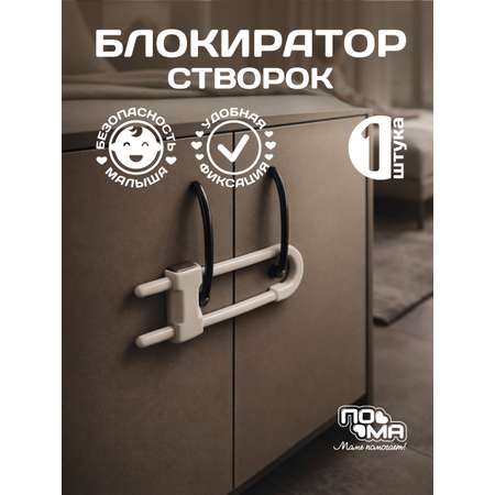 Универсальный фиксатор 1 шт для детской безопасности подходит для любых дверей. Крепится на створки дверей шкафов с ручками. Закрывает ребёнку доступ к опасным для него вещам: аптечка, спички, бытовая химия, косметика и т.д.