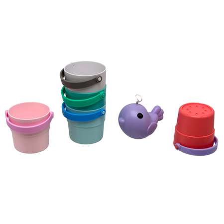 Водная пирамидка-лейка Bambini - набор из 5 ведерок с отверстиями на дне (сито) и птички-погремушки. Можно также играть в песочнице (формочки). Развивает мышление малыша. Выполнена из прочного и безопасного ABS пластика. Размер ведерка 11х8см, размер погремушки 10х6см. Для детей от 3х лет.Цены в интернет-магазине могут отличаться от розничных магазинов.