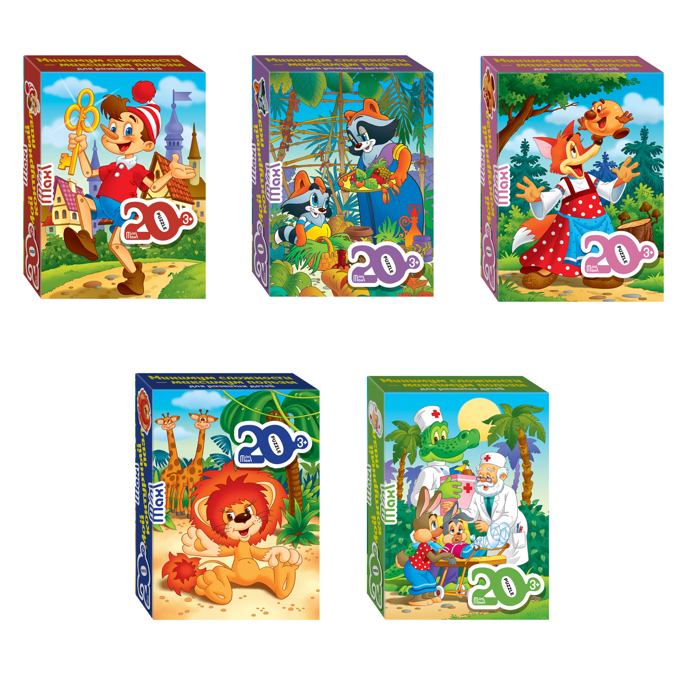 Пазл состоит из 20 деталей. Он выполнен из толстого картона, малышу будет удобно держать детальки в руках и перекладывать их. На картинке тут представлен сюжет знакомой с детства сказки, и это здорово: можно сначала пазл собрать, а потом книжку перечитать.
