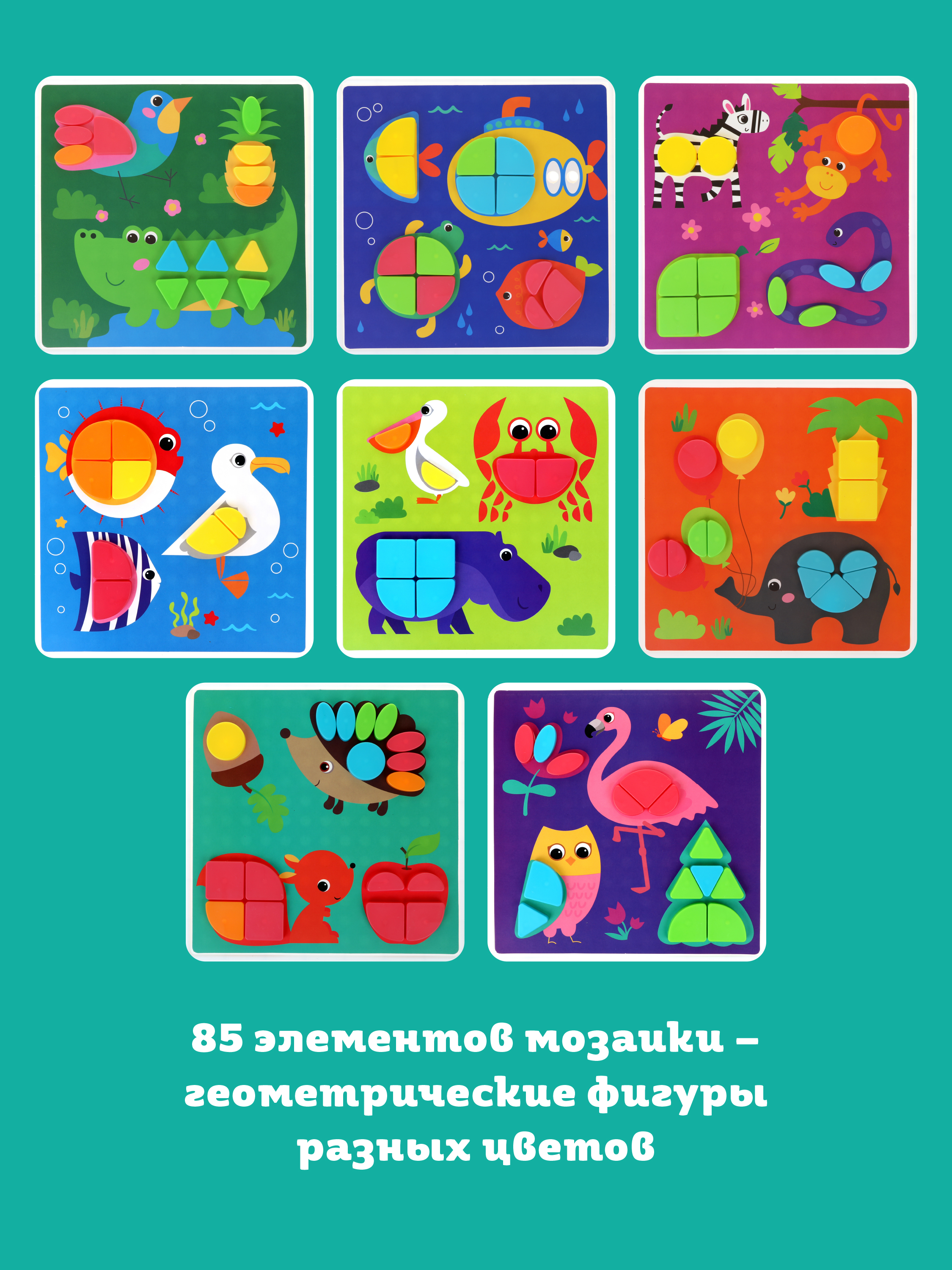 - Красивые качестенные картинки, прочные разноцветные детали, но есть одно большое НО: когда встявляешь деталь в дырочку, то она ерзает там (ножка детали намного меньше по диаметру, чем сами отверстия решетки), а не туго садится в дырку, этим не очень удобная и не прочная конструкция, а жаль, так была бы идеальная мозаика.
