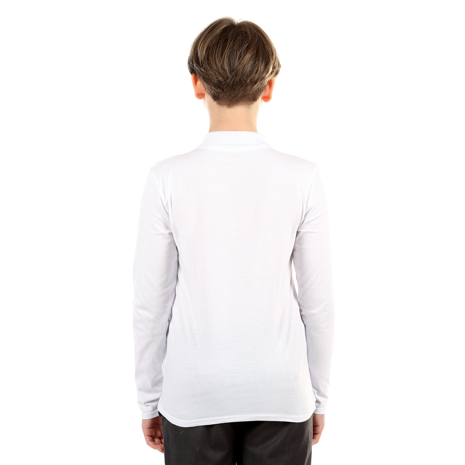 Поло для мальчика белого цвета классического прямого кроя из КУЛИРНОГО ПОЛОТНА