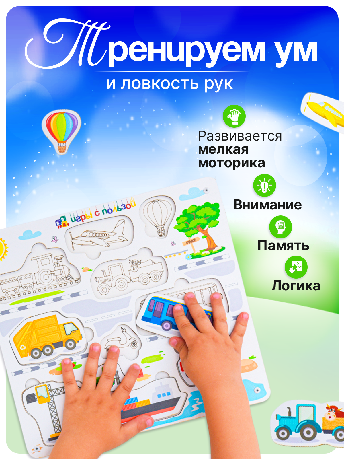 Деревянный сортер "Транспорт" — это увлекательная и полезная игрушка для детей от 2 лет, помогающая развить множество важнейших навыков. Яркие фигурки машинок разных форм и цветов делают игру не только интересной, но и образовательной.