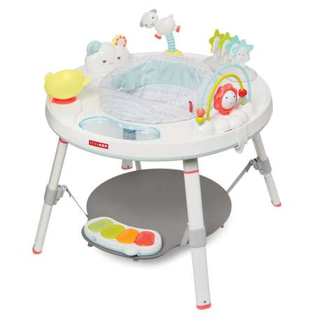 Активный игровой центр Skip Hop станет любимым местом развлечений для вашего малыша! Он содержит всё необходимое для развития ребёнка в игровой форме. Его можно использовать в качестве прыгунков - поворотное сиденье даёт возможность крутиться на 360 градусов и дотягиваться до всех игрушек, которые можно менять местами или снимать. Через специальное прозрачное окошко малыш сможет видеть свои ножки, для которых предусмотрена регулируемая по высоте платформа. Музыкальное пианино со светящимися клавишами реагирует на движения и издаёт приятные звуки. По мере роста ребёнка можно убрать платформу для ног, а так же сделать столик, который подойдёт для рисования и других детских игр. Вес центра без упаковки 6,5 кг, размер в собраннм виде 79*79*47.