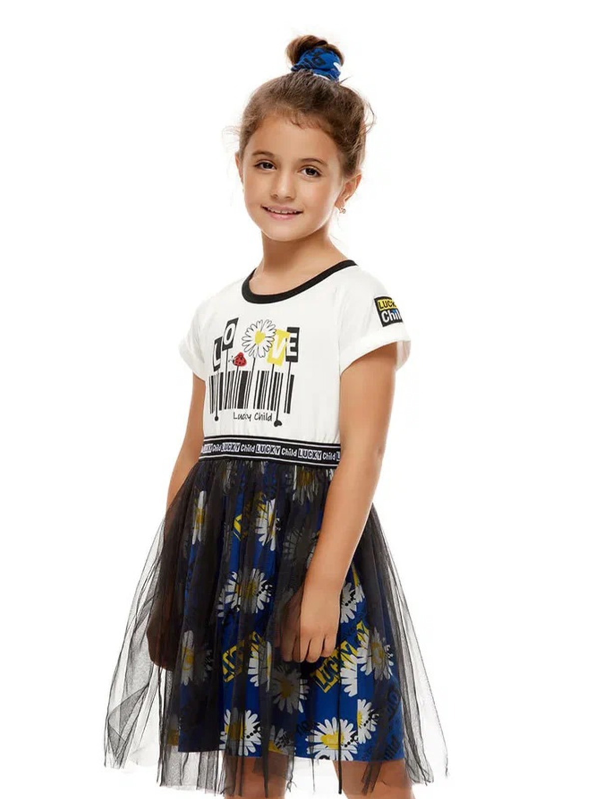 Платье для девочки из трикотажного полотна (кулирное полотно с лайкрой, 95%хлопок, 5%эластан), с отрезной юбкой. На переде - принт. Спинка цельнокроеная. Юбка 2-х слойная, притачана с присбориванием: верхняя юбка из фатина (100%полиэстер), нижняя юбка - из кулирного полотна с лайкрой (95%хлопок, 5%элатан). По шву притачивания юбки настрочена эластичная жаккардовая лента. Срез горловины окантован. Платье с цельнокроеными, короткими, двухшовными рукавами, с цельнокроеными отложными манжетами. Лаки Чайлд предлагает нарядное платье для девочки, которое станет прекрасным праздничным нарядом. Наши платья для девочек созданы с любовью и заботой, чтобы подчеркнуть нежность и очарование маленьких модниц. Мы предлагаем платья для девочек на любой вкус, включая летние платья, нарядные платья и даже платья для новорожденных девочек. Сделайте свою малышку по-настоящему счастливой с помощью прекрасного нарядного платья от Лаки Чайлд. Наши платья для малышей представляют собой не только модный наряд, но и удобную и качественную одежду для малышки. Мы заботимся о том, чтобы каждое платье соответствовало высоким стандартам и было изготовлено из приятных к телу материалов. Наши сарафаны и платья для девочек подойдут как для повседневной носки, так и для особых событий, делая каждый день особенным. Найдите идеальное платье для своей маленькой принцессы в нашем ассортименте и подарите ей радость и красоту. Подбирайте трендовые вещи из наших коллекций и дарите своим детям незабываемые образы от Fashion - пространства Лаки Чайлд! При соблюдении правил ухода на ярлыке, наша одежда прослужит вам долго и сохранит свой изначальный вид. Lucky Child - российский бренд детской одежды, производящий детские вещи по высочайшим стандартам качества. В одежде для новорожденных мальчиков и девочек мы используем ткани только качества "пенье" (100% хлопок самого высокого качества), Вещи изготовлены из гипоаллергенных материалов и используются дышащие принты. Свыше 10 лет мы одеваем более 1 млн детей ежегодно. Дарите своим малышам лучшее. С любовью и заботой бренд Lucky Child.