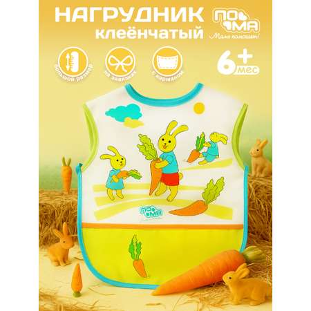 Клеенчатый слюнявчик с объемным карманом на липучке ПОМА - это незаменимый помощник для маленьких гурманов, который позволяет легко и удобно есть любимые блюда.