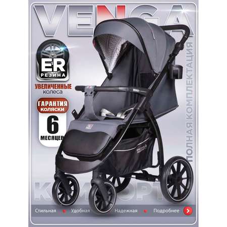 Коляска прогулочная Venga - большая, комфортная, утепленная, всесезонная прогулочная коляска с легкой рамой. Москитная сетка находится в кармашке в подножке коляски. Ручка и бампер с отделкой из ЭКО-кожи. Увеличенные колеса EVA устойчивы к проколам и износу, обеспечивают хорошее сцепление и малый вес. Амортизация у коляски на все 4 колеса. Глубокий, раскладывающийся, утепленный капюшон с возможностью увеличения, с карманом для аксессуаров. Большое с эффектом мягкого дивана, спальное место. Передние колеса с функцией автоматической фиксации. Автоматическая блокировка предотвращает случайное раскладывание коляски. Центральный тормоз позволит быстро реагировать в случае необходимости, просто нажав на него сверху. 5-точечные ремни безопасности с возможностью адаптации их для новорожденных. Механическая регулировка спинки одной рукой. Верхнее положение спинки почти 90 градусов. Вместительная корзина. Размеры в разложенном виде: ДхВхШ 96х103х55см. в сложенном виде: 83х27х57см. Ширина сиденья 37см, глубина 24см Спинка высота 44см. Гарантия 6 месяцев.