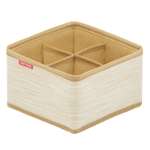 Органайзер для косметики и бижутерии 4 ячейки 15х15х10см. Органайзер обладает прочным каркасом из полипропилена, но при этом легко складывается и раскладывается. Внешняя сторона из текстилена, а подкладка спанбонд. Эти материалы не впитывают влагу, хорошо пропускают воздух и при этом защищают от пыли.