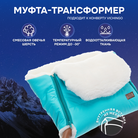 Меховая муфта NUOVITA VICHINGO — привлекательный современный аксессуар для коляски, который обеспечит высокий уровень комфорта во время прогулок с ребенком в холодную погоду. Муфта подходит ко всем типам колясок и санок со сплошной ручкой.Внутренняя часть муфты — смесовая овечья шерсть с пушистым мехом высотой 12 мм. Шерсть обладает природными теплозащитными свойствами и хорошо согревает руки в морозы. Объемный мягкий мех приятно обволакивает кожу, создавая воздушную прослойку и не позволяя холоду проникнуть внутрь.
