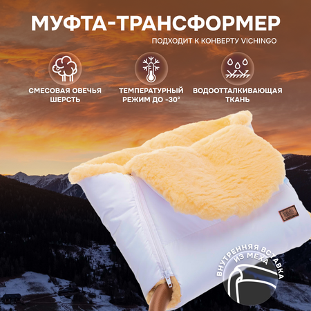 Меховая муфта NUOVITA VICHINGO — привлекательный современный аксессуар для коляски, который обеспечит высокий уровень комфорта во время прогулок с ребенком в холодную погоду. Муфта подходит ко всем типам колясок и санок со сплошной ручкой.Внутренняя часть муфты — смесовая овечья шерсть с пушистым мехом высотой 12 мм. Шерсть обладает природными теплозащитными свойствами и хорошо согревает руки в морозы. Объемный мягкий мех приятно обволакивает кожу, создавая воздушную прослойку и не позволяя холоду проникнуть внутрь.