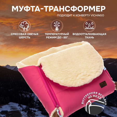 Меховая муфта NUOVITA VICHINGO — привлекательный современный аксессуар для коляски, который обеспечит высокий уровень комфорта во время прогулок с ребенком в холодную погоду. Муфта подходит ко всем типам колясок и санок со сплошной ручкой.Внутренняя часть муфты — смесовая овечья шерсть с пушистым мехом высотой 12 мм. Шерсть обладает природными теплозащитными свойствами и хорошо согревает руки в морозы. Объемный мягкий мех приятно обволакивает кожу, создавая воздушную прослойку и не позволяя холоду проникнуть внутрь.