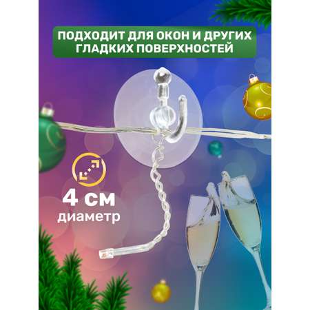 Присоски значительно упрощают монтаж светодиодных украшений. Корпус изделий дополнен крючком для фиксирования нитей. Обратная сторона конструкции предназначена для установки на окнах или зеркалах: присоска надежно прилегает к поверхностям, выдерживает высокую нагрузку. Применяется совместно со светодиодными занавесами-дождями, бахромой, твинклом, мишурой и другими украшениями. После снятия прозрачные присоски не оставляют следов на поверхности. В упаковке поставляются 10 штук диаметром 40 мм. Используемые материалы являются экологически чистыми и безопасными для эксплуатации в детских комнатах и других помещениях.