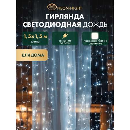 Светодиодная гирлянда NEON-NIGHT Дождь-занавес 1.5х1.5 м 8 режимов белое свечение