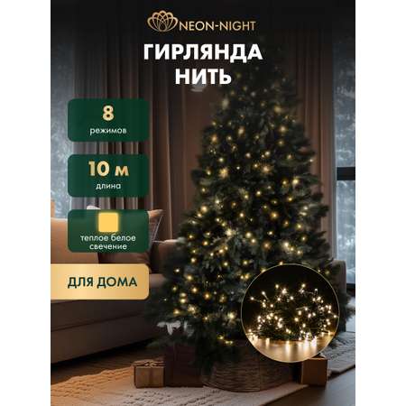 Цена на Светодиодная гирлянда NEON-NIGHT Твинкл-лайт 10 м 8 режимов тепло-белое свечение - 539 ₽.
