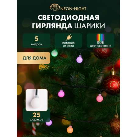 Цена на Светодиодная гирлянда NEON-NIGHT 25 мм 8 режимов с эффектом смены цветов RGB - 801 ₽.
