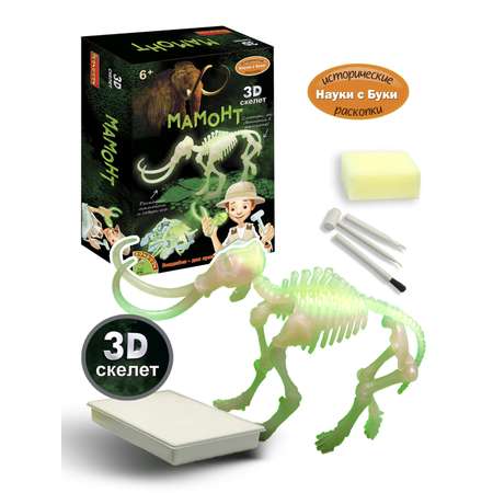 Набор для раскопок Bondibon Мамонт скелет светящийся