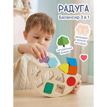 Башня-балансир детская деревянная РАДУГА Алатойс развивающая игрушка (7 деталей) сортер Монтессори