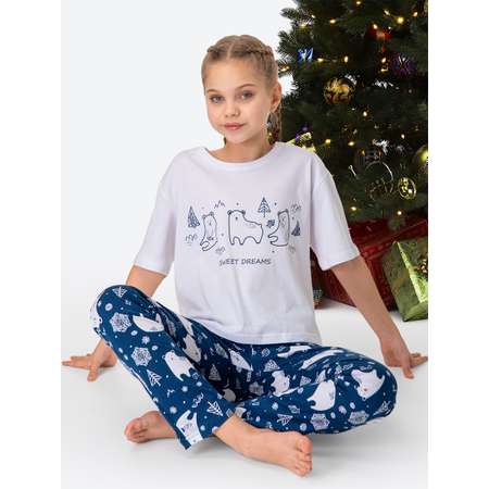 Классная пижамка с принтом белые мишки для девочки напомнит о приближении самых волшебных праздников! Детская пижама состоит из укороченной футболки и брюк, пояс на резинке дополнительно регулируется шнуром.