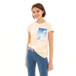 Модель выполнена хлопкового трикотажа. Детали: - круглый вырез; - короткие рукава; - футболка украшена оригинальным принтом.