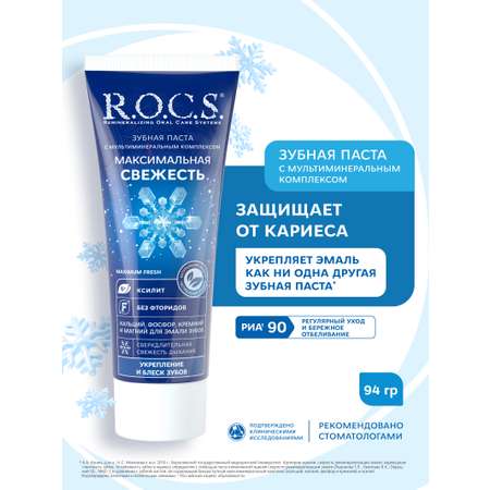 - Паста зубная R.O.C.S. «Максимальная свежесть» предназначена для ежедневного регулярного использования. Она обеспечивает качественный гигиенический уход; рекомендована не только взрослым, но и детям старше 7-ми лет.