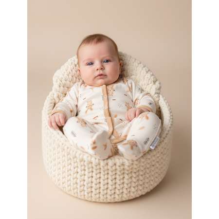 - Натуральный гипоаллергенный материал: Комбинезон выполнен из мягкого хлопкового трикотажа, который обеспечивает воздухопроницаемость, комфорт и безопасность для чувствительной кожи новорожденного.