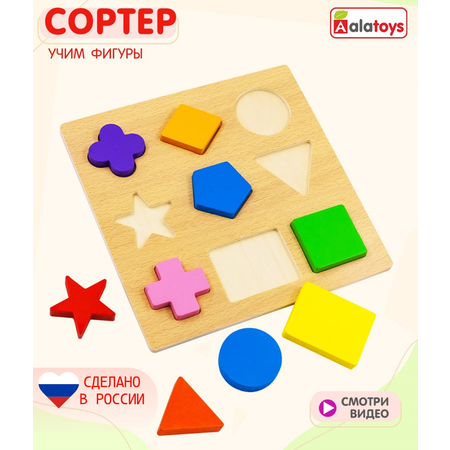 Сортер Монтессори детский деревянный Алатойс Настольная игра рамка-вкладыш (9 фигур)