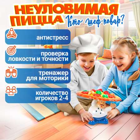 "Игра ИГРОДРОМ Неуловимая пицца от 1TOY – настоящая находка для всех любителей игрушек и настольных игр! Это что-то прикольное, что покорит сердца девочек, мальчиков и их родителей. Зачем скучать, когда можно веселиться с друзьями и семьей, пробуя свою ловкость?Этот игровой набор – просто мечта для тех, кто обожает приколы, классные штучки, игрушки для девочек и игрушки для мальчиков. В нем сочетается всё: от удачи до захватывающего соревнования. В этой игре главным действующим лицом станет повар, которому крохи должны помочь в приготовлении вкусной пиццы. Но фигурка не устойчивая, поэтому аппетитному лакомству с различными ингредиентами грозит опасность, и игроки должны избежать падения ломтиков салями или кусочков помидор. Победителем станет самый ловкий и везучий! Это настоящие развлечения для любой компании.Неуловимая пицца – идеальная настольная игра для детей и взрослых, которая может легко превратиться в любимую настольную игру для всей семьи. Компактный и удобный, этот набор подойдет для игр в дорогу. Настолки станут незаменимым спутником в поездках на море, в походе или на пикнике. Взять их с собой на день рождения, выпускной или девичник – отличная идея!Для тех, кто ищет развивающие игрушки, развивашки и головоломки для детей, Неуловимая пицца станет приятным открытием. Эта игра настольная семейная помогает развивать координацию и мелкую моторику, превращая процесс обучения в увлекательное занятие. Игры для детей стали захватывающими!В нашем ассортименте вы найдете множество прикольных штук, милых штучек и необычных игрушек для любого возраста. Мини игрушки, игры в дорогу для детей и настольные игры в дорогу – все это можно взять с собой на природу, в поездку на поезде, в путешествие, в детский сад или в самолет.Детские игрушки ИГРОДРОМ – это не просто игры в которые играют люди, а возможность сделать любой вечер незабываемым."Цены в интернет-магазине могут отличаться от розничных магазинов.
