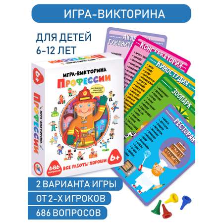 Викторина для детей отлично подойдет для семейного досуга, а также как игра для компании на любом празднике. Компактный размер коробки позволяет взять игру в дорогу или в путешествие.