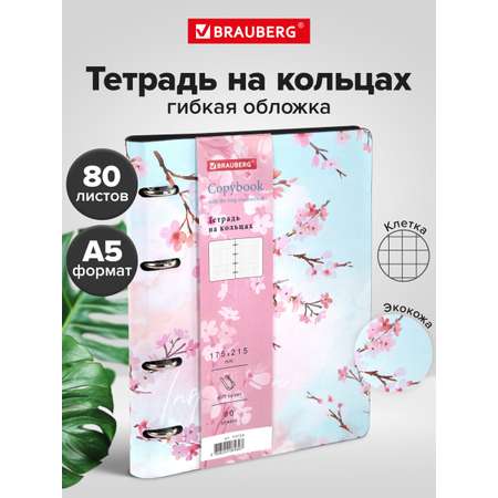 Тетрадь на кольцах Brauberg со сменным блоком А5 80л под кожу Inspiration