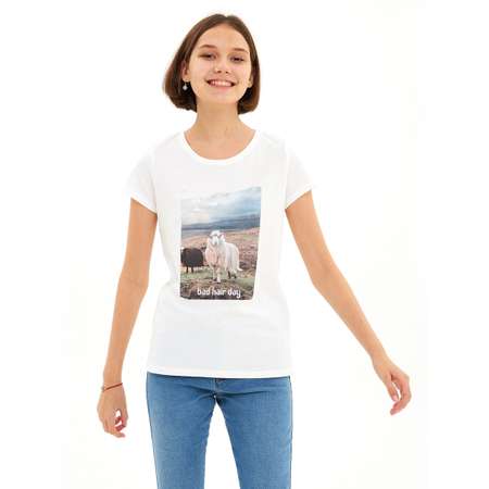 Детали: - круглый вырез; - короткие рукава; - изделие украшено оригинальным принтом.