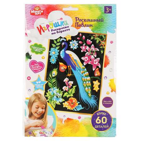 Набор для творчества «Раскраска на бархате. Роскошный Павлин» ТМ «МультиАрт» отличный подарок для вашего ребенка, который будет способствовать развитию его творческих способностей.