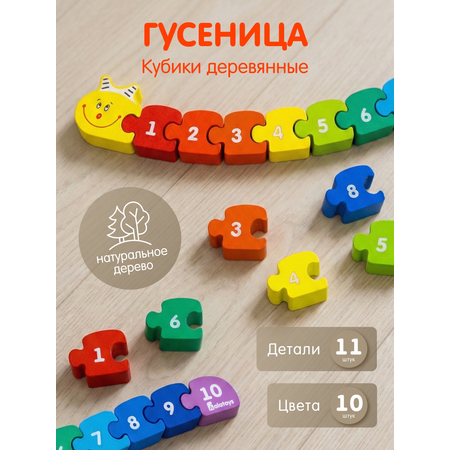 Пазл детский деревянный (11 деталей) Алатойс развивающая игра для малышей ГУСЕНИЦА