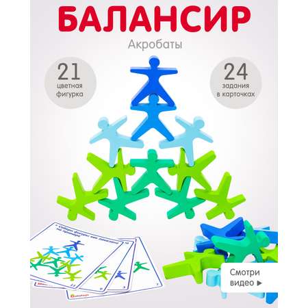 Башня-балансир для малышей "АКРОБАТЫ" Alatoys настольная развивающая игра (24 задания, 21 фигурка)