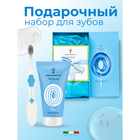 Подарочный набор Montcarotte Детская гелеообразная зубная паста Нейтральный + Зубная щетка Голубая