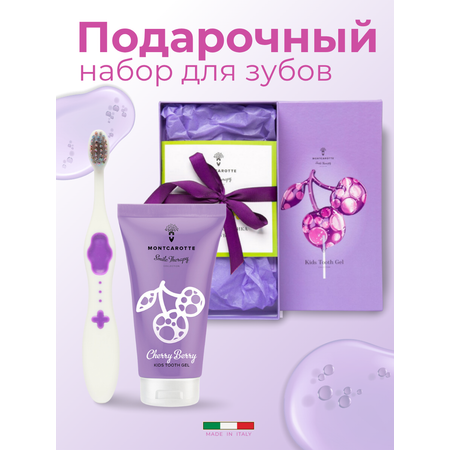 Подарочный набор Montcarotte гелеообразная зубная паста Ягодка Вишня + Зубная щетка Фиолетовая