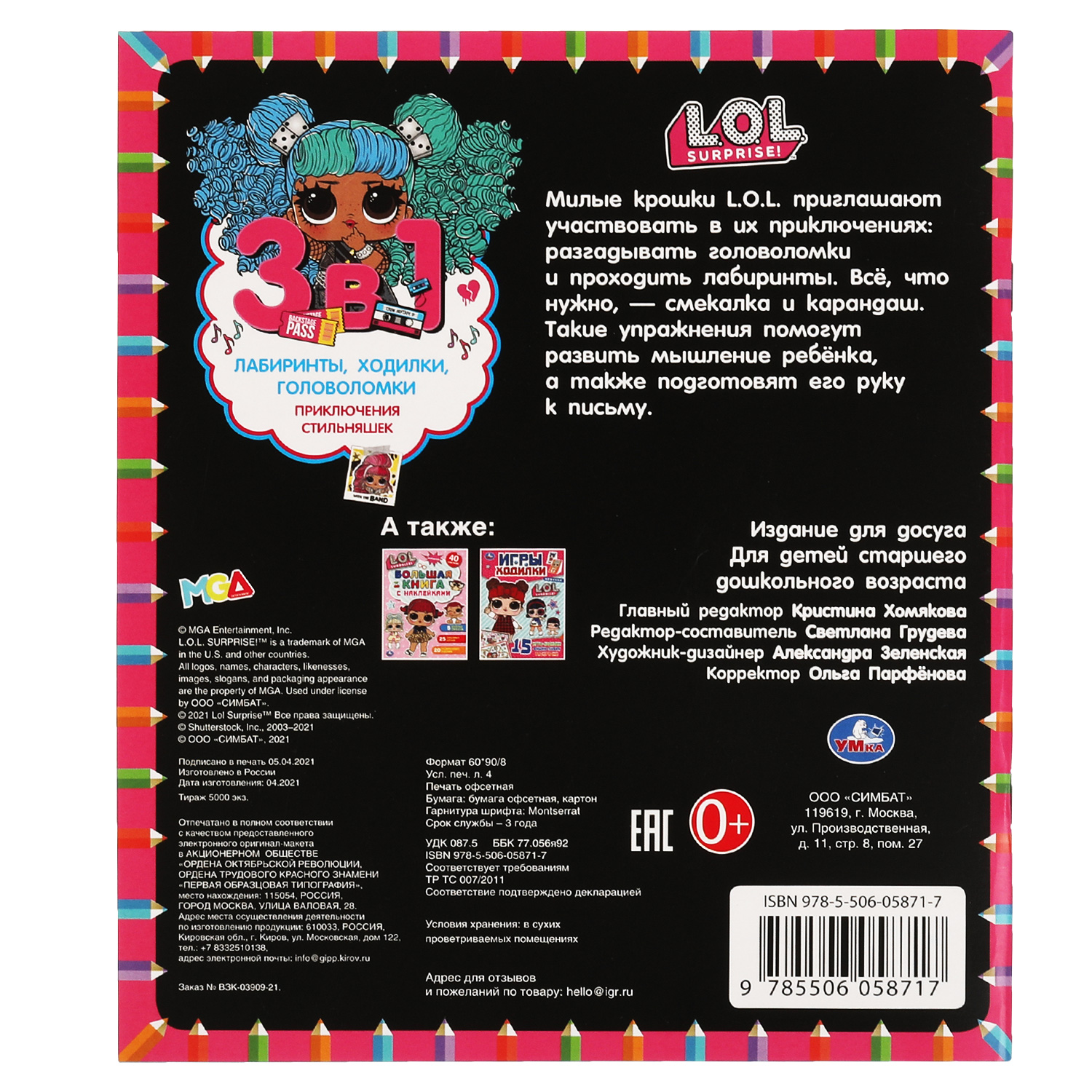 Развивающая книга 3 в 1 «ЛОЛ. Приключение стильняшек» ТМ «УМка» станет прекрасным подарком для ребёнка: