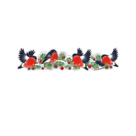 Плакат растяжка новогодняя Империя поздравлений снегири на ветках для декора интерьера на Рождество