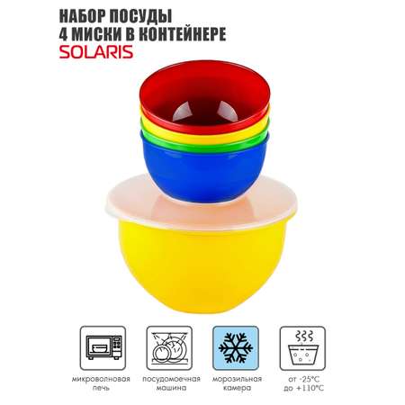 Цена на Набор посуды Solaris 4 миски 1л в контейнере - 1830 ₽.