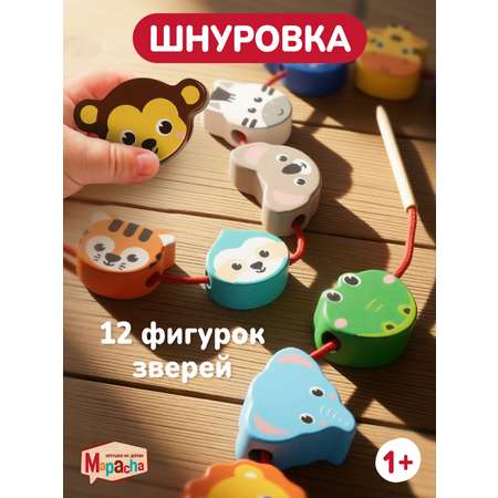 Шнуровка Mapacha развивающая игрушка монтессори мелкая моторика внимание. Зоопарк.