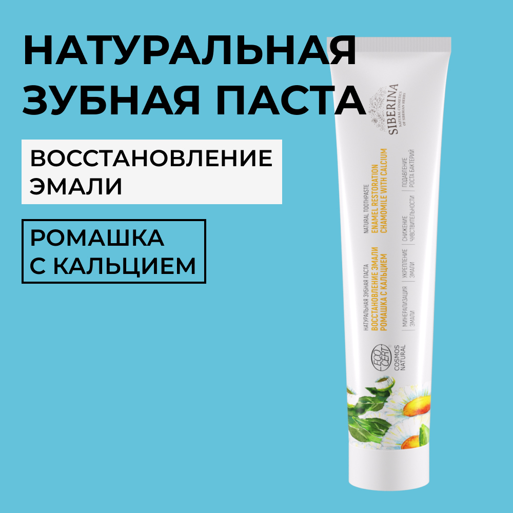 Зубная паста Siberina натуральная «Ромашка с кальцием» восстановление эмали 75 мл