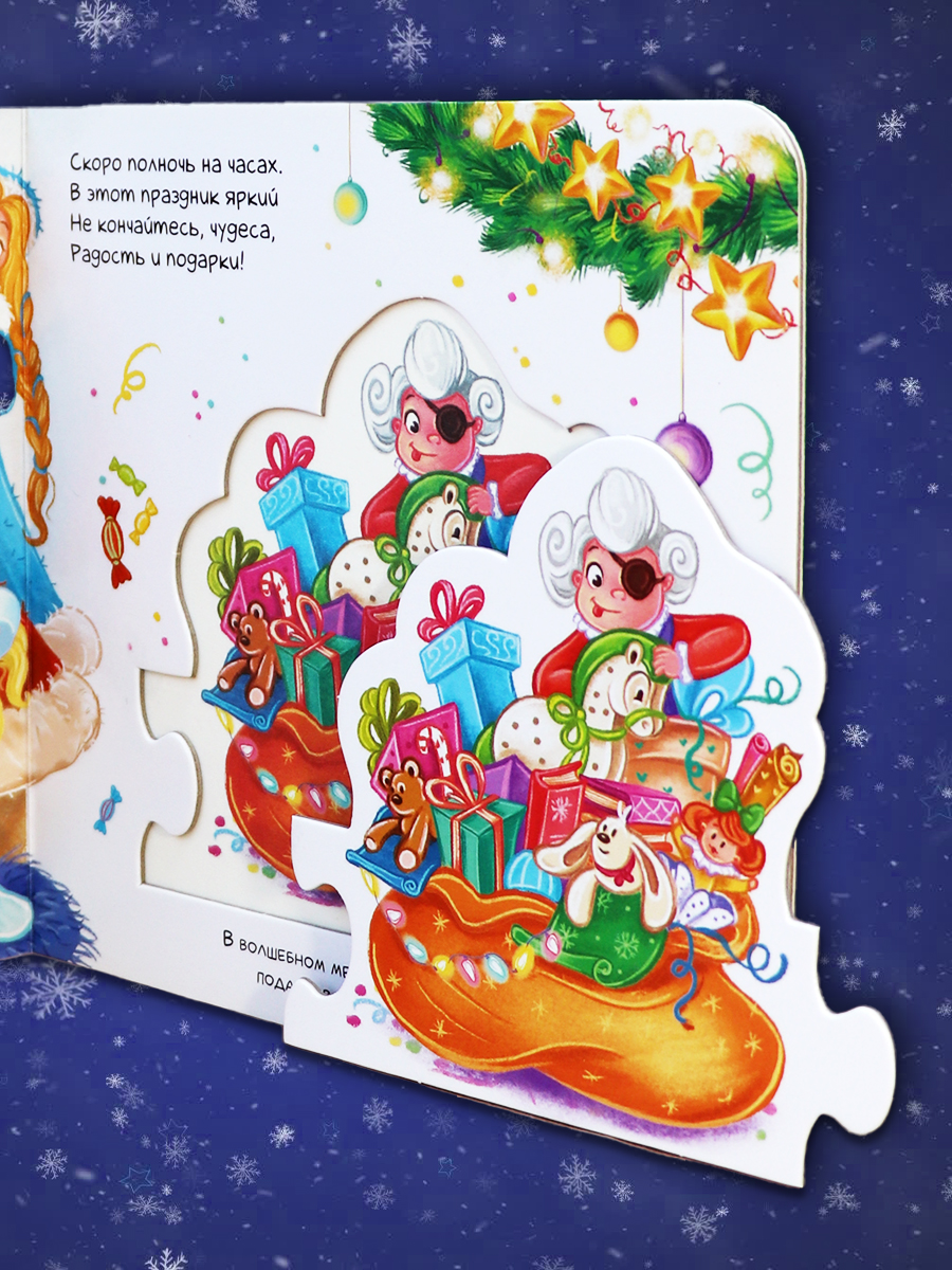 «Новогодняя сказка» – это книга с красочными рисунками и большим фигурным пазлом на каждом развороте. Тематические страницы иллюстрируют яркие и любимые моменты новогодних праздников: утренник, встречу с Дедом Морозом, подарки, ёлку. Каждую сцену сопровождает добрый и забавный стишок, который поможет развить память и расширить словарный запас. Пазлы со всей книги можно собрать и комбинировать друг с другом в любом порядке. Они помогают развить мелкую моторику рук и фантазию. Книга и пазлы имеют яркую печать и при этом выполнены из толстого, прочного картона, который трудно сломать или порвать. Формат книги: 160×160 мм.